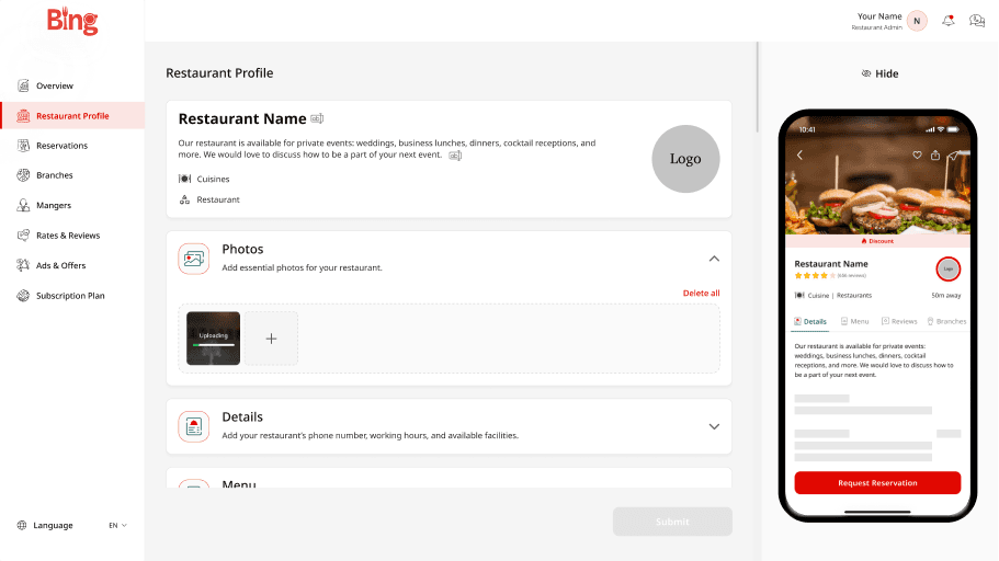Promote your special offers, discounts, and limited-time deals directly inside the app. From lunch specials and happy hour to seasonal promotions, Bing helps you turn every offer into real bookings.